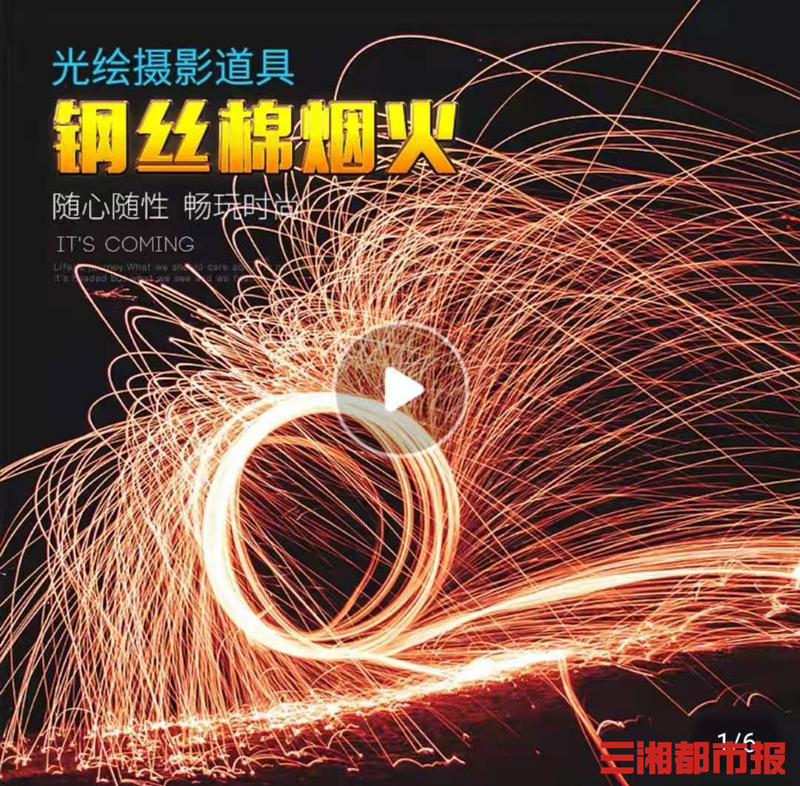 节日纷至,因为不少城市禁燃烟花的规定,这种原材料为钢丝棉的“别样烟花”在网络走红。商家宣传:只要在做好保护措施的情况下,将其点燃后系在铁链上,大力甩起来就可以达到如同烟花般绚丽的效果。
