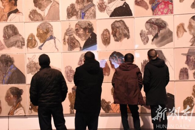 这次展出的作品在艺术创作的高度上,紧贴时代要求。人物画能够更贴切地表达我们这个时代的人文精神和社会面貌。中国画实际上最早是以人物画为主体的。现在我们能够见到的最早的中国画——出土于长沙楚墓的《人物龙凤图》《人物御龙图》,也是属于人物画。这次的人物画细分为工笔和写意。这次展出的每件作品都各具亮点。譬如,由袁武老师创作的《大昭寺清晨》,是由90幅小画组成的,组成了一幅大的作品,整体展现的效果非常精彩。