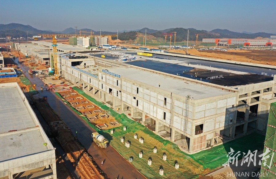 1月19日,由中建五局三公司承建的湖南三安半导体项目芯片厂房顺利封顶,标志着湖南首个第三代半导体产业园项目(一期)Ⅰ标段主体工程完工,预计今年6月份实现投产。 湖南日报·新湖南客户端记者 田超 通讯员褚兴科 摄影报道