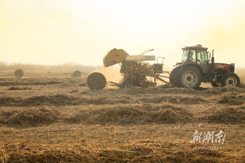 1月15日,岳阳市君山区芦苇总场,机械化收割作业全面展开。近年,该区采用现代机械收割芦苇,相比传统人工收割大大提升了效率,有利于湿地生态保护和火灾预防,对野生植物、苇芽越冬也起到保护作用。湖南日报记者 徐典波 摄