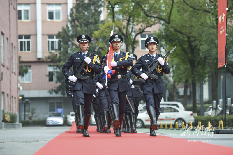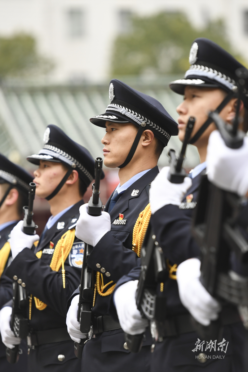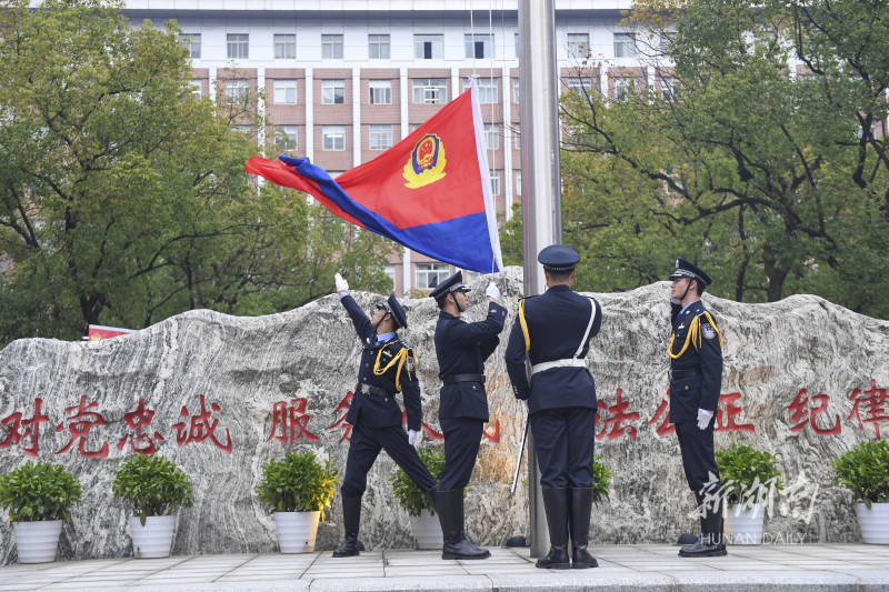 1月10日,长沙市公安局举行警旗升旗仪式。当天是首个中国人民警察节,长沙公安首次举行升警旗仪式,民辅警代表重温入警誓词,高唱警歌,并向警旗敬礼。 湖南日报记者 辜鹏博 徐行 摄影报道