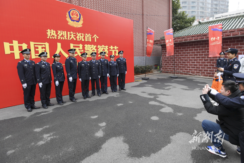 1月10日,民警合影留念。当天是首个中国人民警察节,长沙公安首次举行升警旗仪式,民辅警代表重温入警誓词,高唱警歌,并向警旗敬礼。 湖南日报记者 辜鹏博 徐行 摄影报道