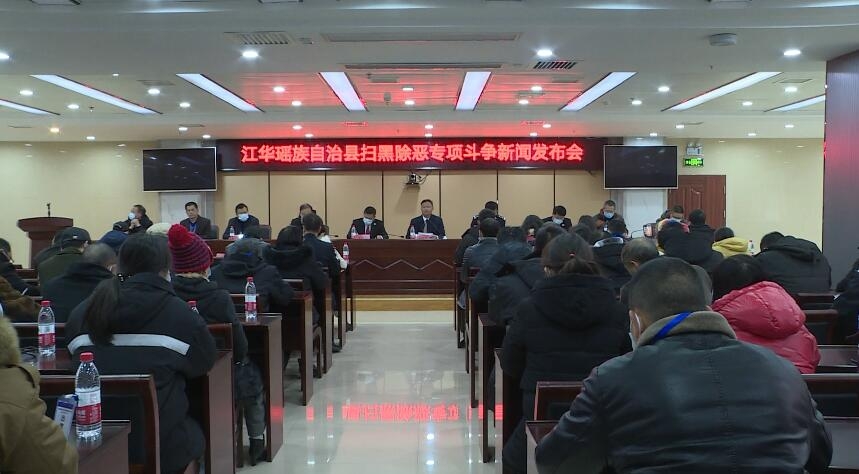 新湖南客户端1月8日讯(通讯员:钟芳玲)1月8日,江华瑶族自治县召开扫黑除恶专项斗争新闻发布会。该县县委常委、县委政法委书记、县扫黑除恶专项斗争领导小组执行副组长伍继承主持会议,副县长、县公安局局长、县扫黑除恶专项斗争领导小组副组长胡少波通报2018年以来全县扫黑除恶专项斗争工作情况,县公检法司主要负责人、县委政法委、县纪委监委、县委组织部、县委办、县政府办、县委宣传部、扫黑成员单位、沱江镇、大路铺镇、河路口镇、水口镇分管领导及党代表、人大代表、政协委员、社区群众代表、教育系统代表、卫健系统代表、企业代表等29个部门60人出席会议,法制周报、江华电视台、江华发布、江华融媒、江华政府网、平安江华、江华党建、公检法司官网及相关公众号记者、通讯员现场采访并提问。