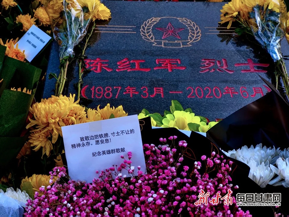 据中国退役军人消息 2月20日,和煦的阳光透过葱郁的松柏,洒向兰州市烈士陵园墓地。英魂苑庄严肃穆,刻有“陈红军烈士(1987年3月—2020年6月)”几个大字的方形墓碑前摆满了鲜花,寄托着人们对烈士的怀念和敬意。