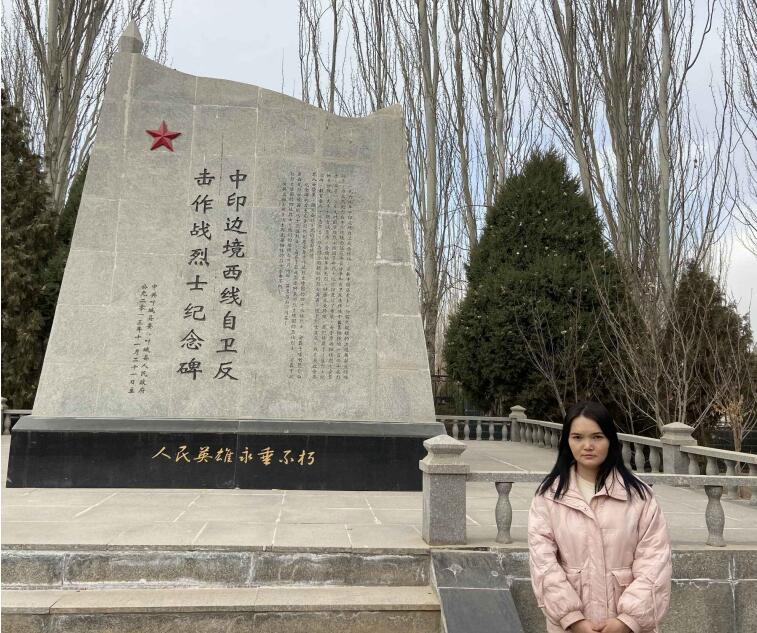 第三站,他们来到了叶城烈士林园。叶城烈士陵园是为了纪念l962年10月在中印边境西段自卫反击作战中光荣牺牲的革命烈士。“他们把自己的青春和热血献给了祖国,献给了边疆,也献给了国家的安定和团结。正是他们的英勇献身才保住了这片国土,才有了我们今天安稳的幸福生活。”老年服务与管理2035班的再依努尔·阿布都克热木感慨地说,“我们见证了你认为的岁月静好,只不过是有人在替你负重前行。”