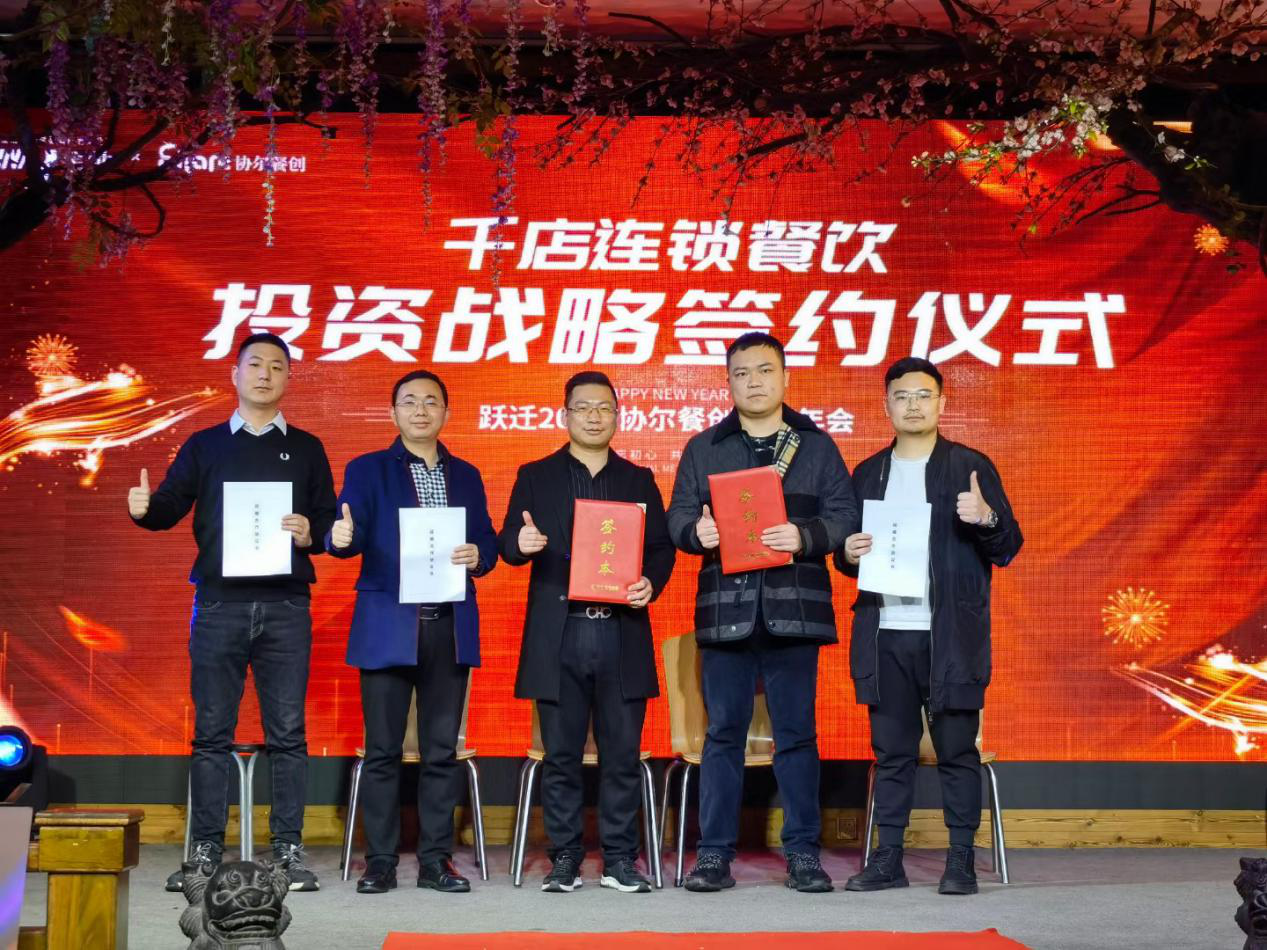 2021年1月27日,跃迁2021·协尔战略年会在长沙隆重举行,年会上协尔与新玉轩资本双方核心团队共同签署了文创餐饮投资战略合作协议,正式达成合作。