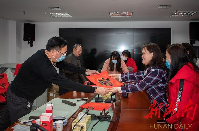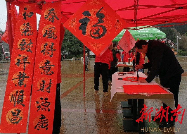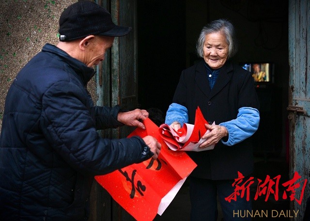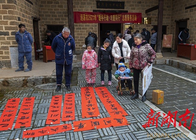 涟源市团委组织市书法家协会为当地村民书写春联,送去新春祝福。李湘杰2月5日拍于涟源李聚奎故居