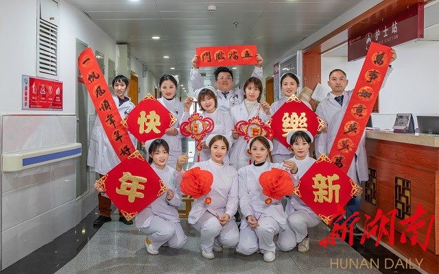 与春联合影。廖振刚2月8日拍于娄底市中医院