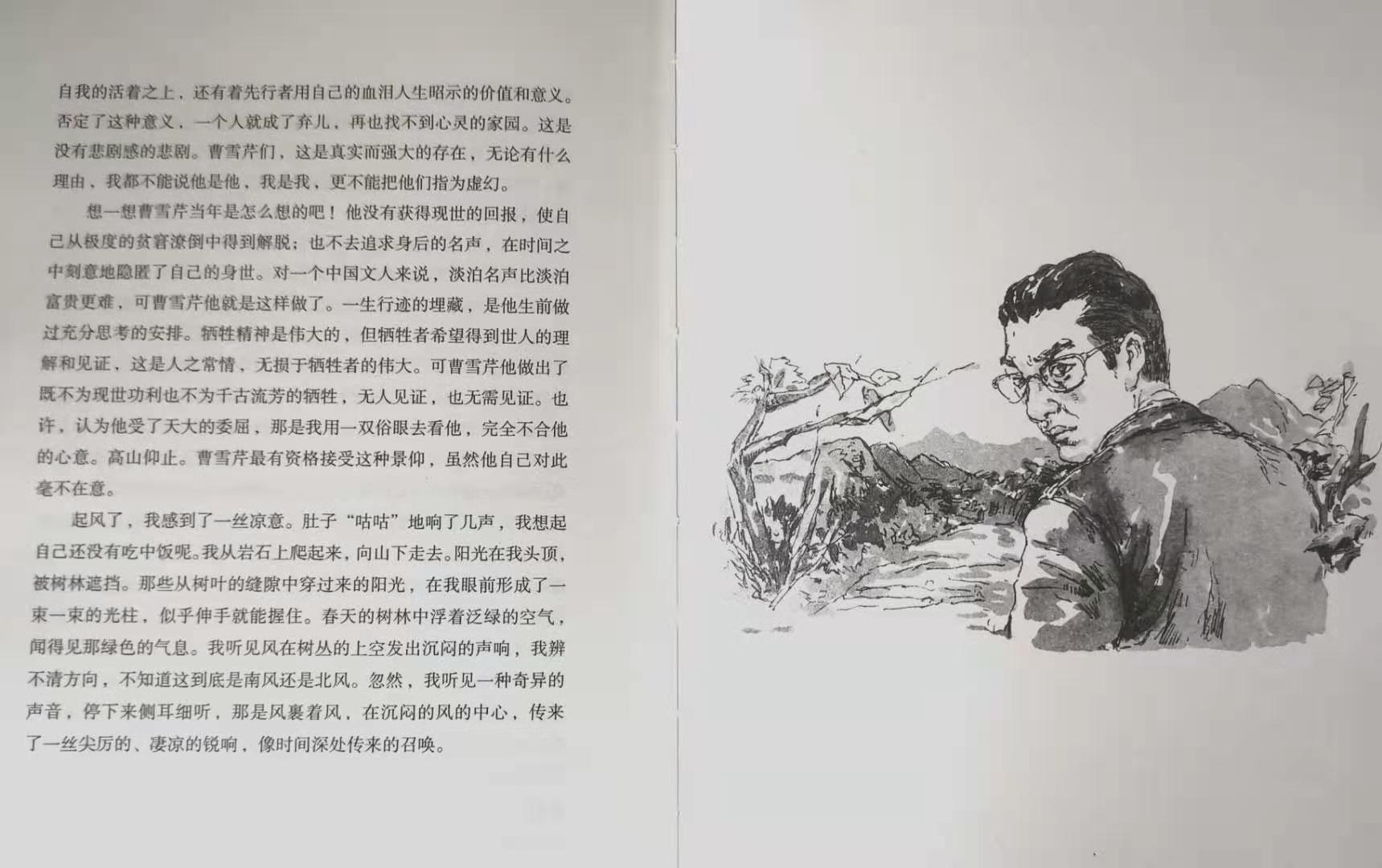 阎真的文字中,经常渗透着大量的心理描写,以着重展示角色的人生思索。书中,还特别邀请专业插画作者曹勇为小说量身定做了插图百余幅,以插图配合文字,将内敛的文字具象化表达。在《曾在天涯》中,有一段留学生在异国城市中心的墓地中的思考颇为经典。新出版的插图典藏版中,插画作者就以画笔描摹展现这一场景。“这样的插画很多,与文字相得益彰,颇有韵味。”