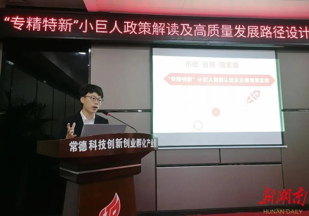 为帮助中小企业深入了解中央关于引导中小企业健康发展的相关文件精神和湖南“三高四新”战略关于推动制造业高质量发展的工作部署,3月17日,专精特新“小巨人”政策解读及高质量发展路径设计专题培训会在常德高新区创新创业孵化产业园召开。
