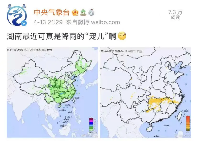 截至4月10日长沙已下雨47天