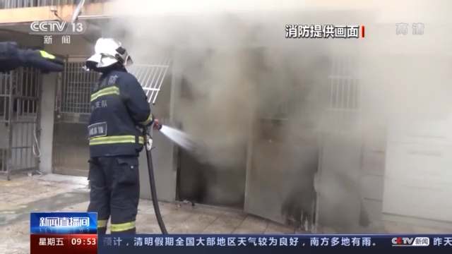 消防员先将防盗窗进行了拆卸,然后利用水枪对明火进行处置,明火很快得到了控制。随后消防员利用工具将着火物清理了出来。