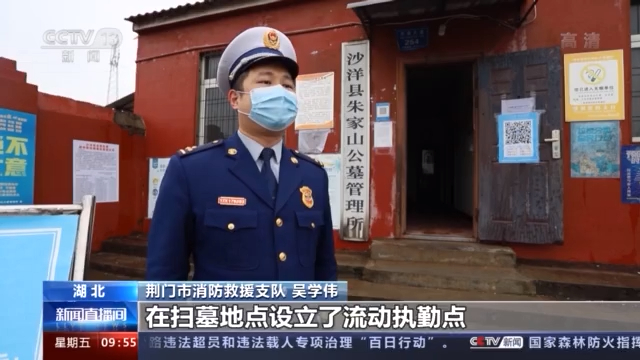 湖北省荆门市消防救援支队 吴学伟:在扫墓地点设立了流动执勤点,在人流量比较大的时候我们加大巡查力度,及时消除火灾隐患。