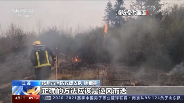 江苏省扬州市消防救援支队 姚相宇:在起火区域内如果被火势包围,要判明火势的大小、方向,选择有利的地形突围,正确的方法应该是逆风而逃。(总台央视记者 宋飞京)