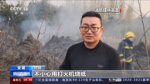 村民:不小心用打火机烧纸,把火点燃了,引起了火情。