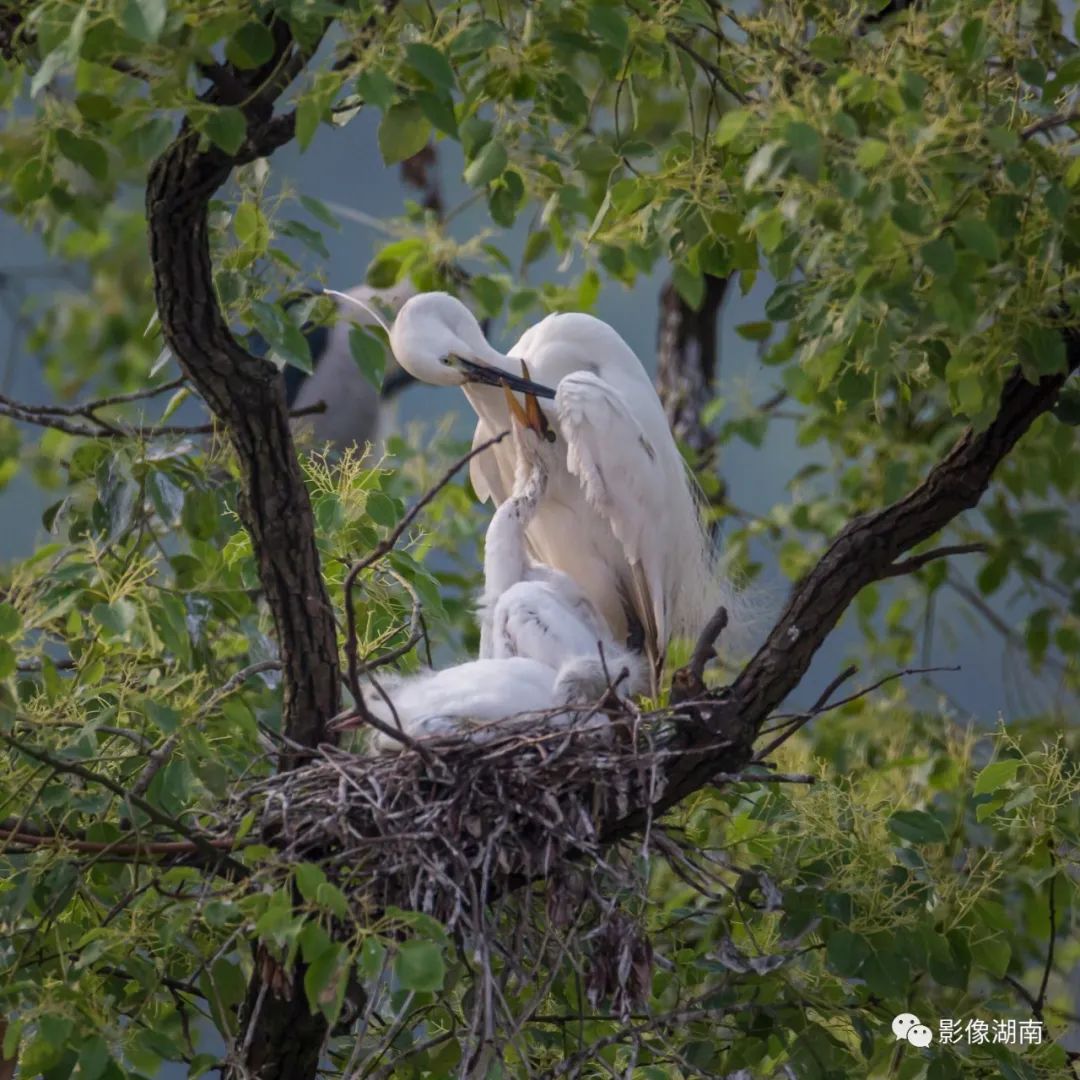 阳春三月,随着气温升温,白鹭也进入了繁殖期。高大青翠的树冠上,一群嗷嗷待哺的可爱幼鸟叽叽喳喳叫唤着,雌鸟则变身为慈母,精心喂养着小白鹭。认真等待,兴许就能定格住这一精彩的瞬间。