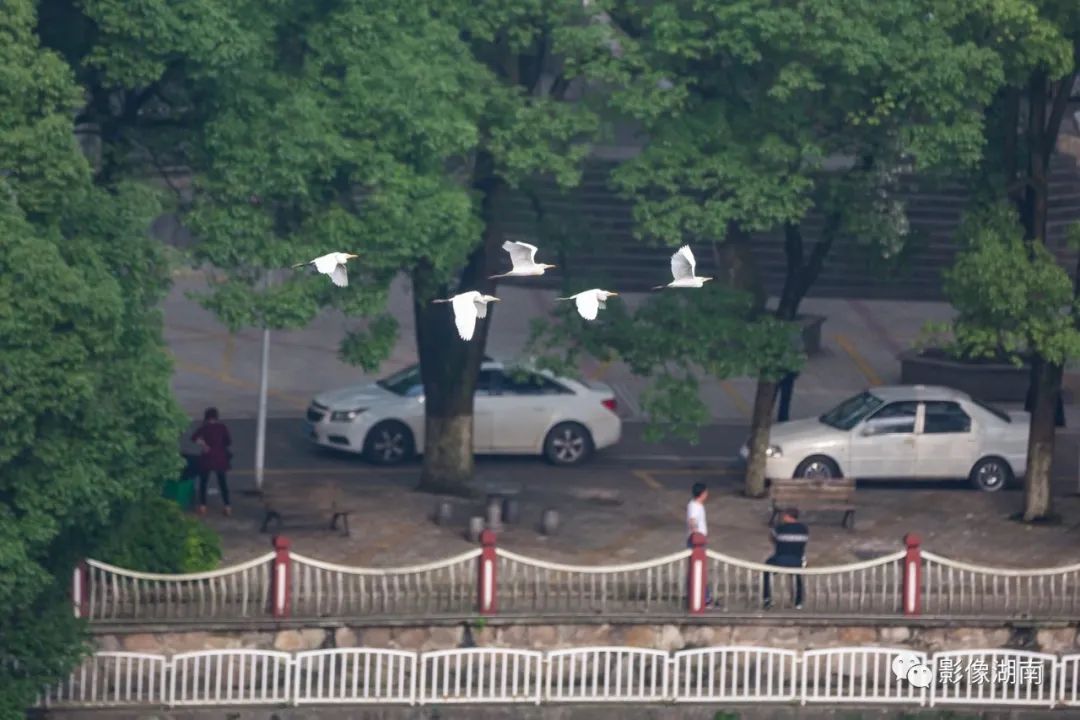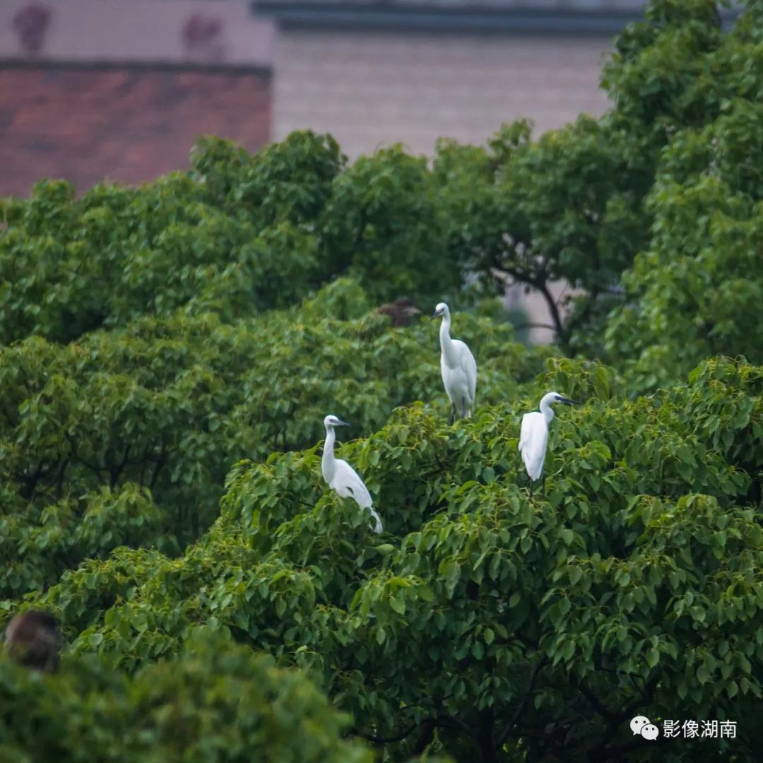 长沙市开福区浏阳河畔,位于解放军联勤保障部队第九二一医院内的一棵百年香樟树上,成群鹭鸟扎堆、筑巢。巢里、枝上,处处是鹭鸟,仿佛“长在了树上”。