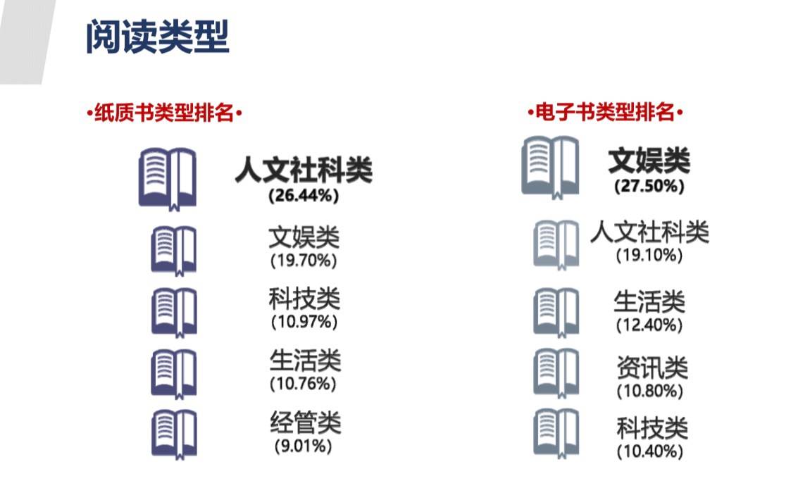 人文社科类纸质书受青睐,文娱类电子书占比大