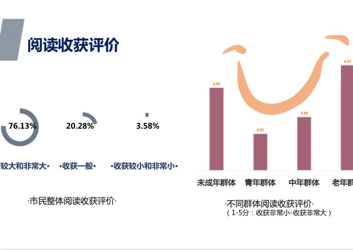 调查认为, 这条“微笑曲线”让打击进一步思考:在全民阅读这一国家 战略背景下,应当如何提升不同年龄段群体的阅读体验和阅读收获,尤其是如何改善中青年群体的阅读状况,从而确保 各年龄段群体阅读收获评价都能处在较高的水平。