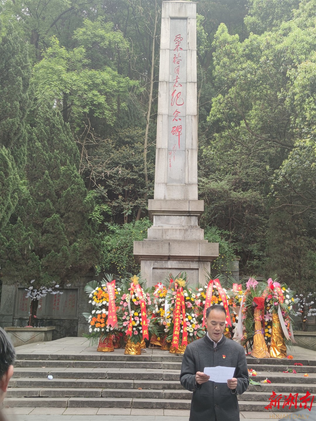 在粟裕同志纪念碑前,队伍庄严肃穆、安静有序,党员代表敬献花篮,整理挽联,全体人员面向粟裕同志纪念碑行鞠躬礼,讲述和聆听粟裕大将革命事迹,全体党员在纪念碑前重温入党誓词。大家纷纷表示,将永远铭记革命先烈英雄事迹,传承弘扬革命精神,继承先烈遗志,立足岗位,积极工作,以勤奋务实的工作作风和实实在在的工作成绩向建党100周年献礼。