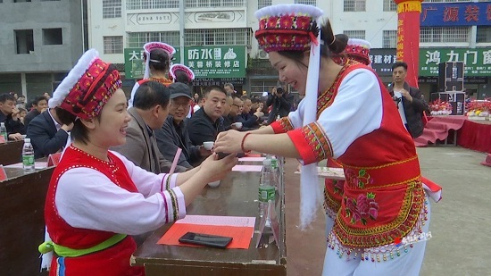 “三月街”是白族最盛大的传统节日,也是白族传统的民间物资交流和文娱活动的盛会。当天,身着民族服装的白族同胞进行了游神活动,缅怀祖先,祈祷来年风调雨顺、国泰民安。游行结束后,白族姑娘为来宾献上“一苦、二甜、三回味”的白族三道茶。随后,白族杖鼓舞、帝虎凳、霸王鞭等节目轮番上演,为现场观众送上一场文化盛宴。白族同胞跳着民族舞蹈,赞美幸福美好的生活,表达节日的喜悦。现场还为芙蓉桥村白族书屋爱心图书室和桑植县芙蓉艺术中心进行了授牌。
