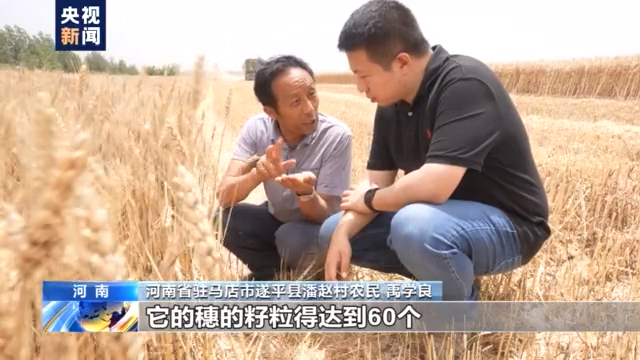 河南省驻马店市遂平县潘赵村农民 禹学良:农民常言讲,谷3000麦60,就是说一个小麦的丰收,它的穗的籽粒得达到60个,今年就是50多个到60个,况且今年没有瘪粒和小粒,这是它丰产的关键。