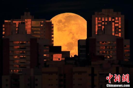 巴西首都,“超级血色月全食”现身楼宇之间。