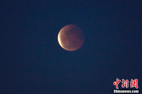 5月26日晚,在海南省海口市拍摄的 “超级月亮+月全食”天文奇观。当天,月球抵达近地点且恰逢满月,并有月全食出现。 中新社记者 骆云飞 摄