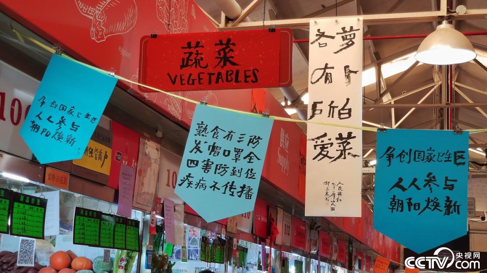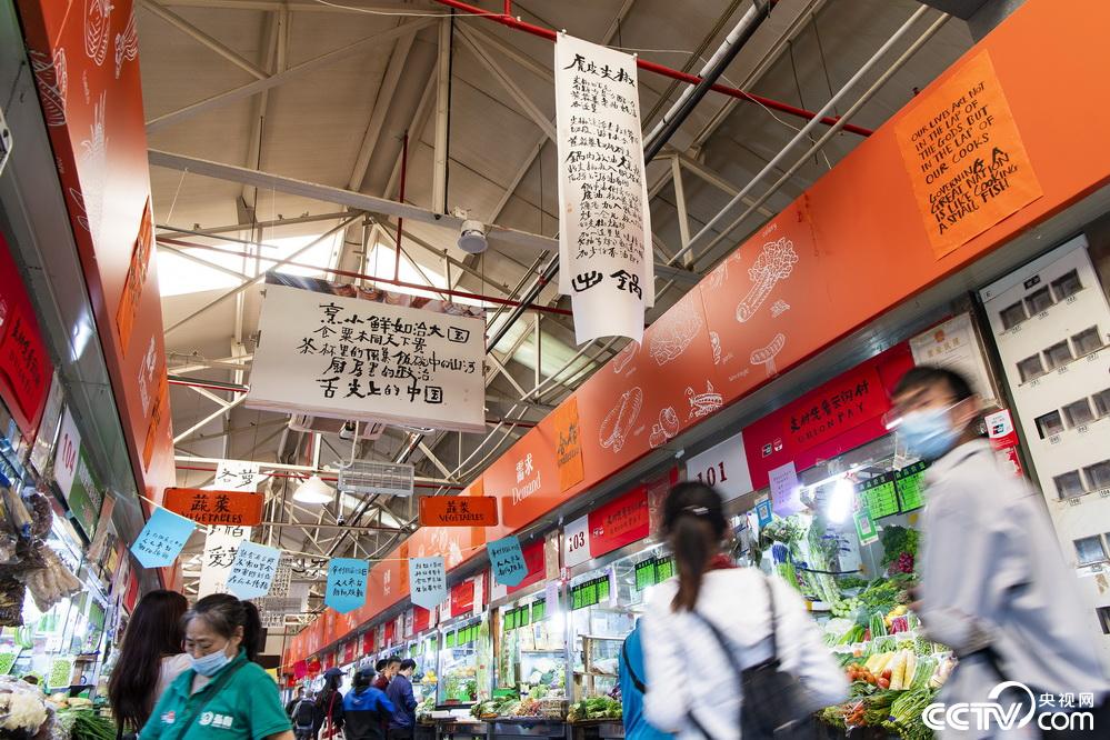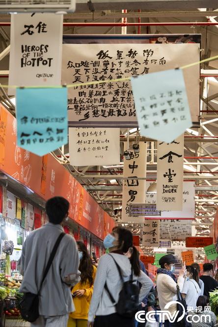2021年5月5日,北京三源里菜市场成了“民以食为天”的展厅,近百幅艺术家书写的食物主题日常短语、警言与招牌,令市民和摊主倍感新鲜,也为书法艺术沾上了人间烟火气。 视觉中国