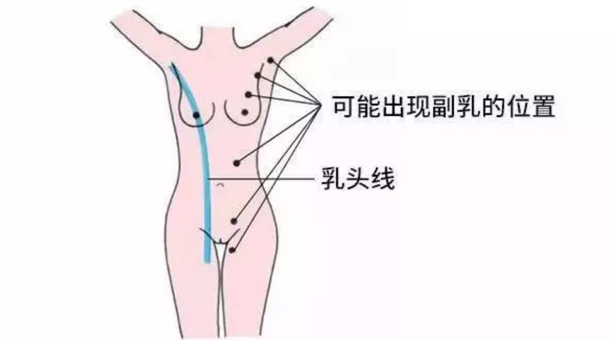 动物有两排乳房,人在胚胎时也有两条,自腋窝至腹股沟连线上。后来在胚胎发育时会退化,出生时除胸前一对外均退化。若未退化或退化不全,则会形成副乳。