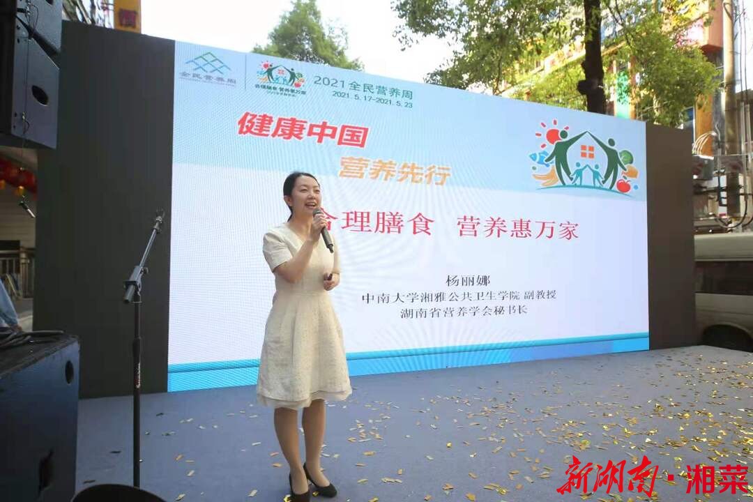 中南大学湘雅公共卫生学院副教授、湖南省营养学会秘书长杨丽娜现场向市民宣讲“合理膳食”的相关知识。