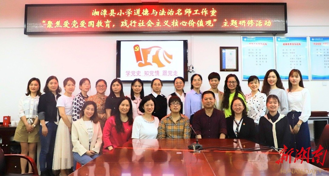 科教新报·新湖南客户端讯(通讯员 杨桂英)5月8日,湘潭县小学道德与法治名师工作室在基地校天易金霞小学举行“聚焦爱国爱党教育,践行社会主义核心价值观”主题研修活动,工作室全体成员以及基地校全体党员、道德与法治教师参加了此次活动。