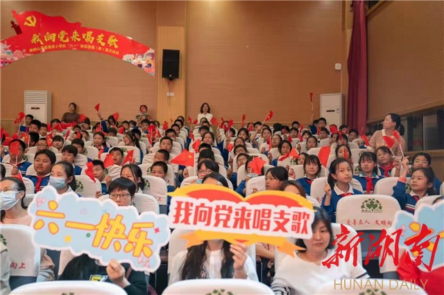 活动现场,《我向党来唱支歌》《故乡的鸽子花》《党啊,亲爱的母亲》《六一的歌》……口风琴、铝板琴和葫芦丝等“十八般乐器”轮番上阵;数百名孩子盛装出席、开腔亮嗓,唱响属于童年的快乐歌谣。