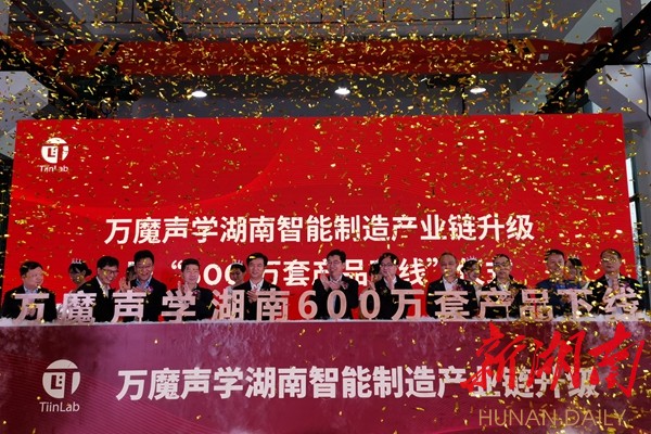 湖南日报·新湖南客户端5月21日讯(记者 唐曦)今天,万魔声学(湖南)第600万套产品正式下线仪式,在“湘南硅谷”衡阳市衡山科学城内举行。衡阳市委书记邓群策出席活动并宣布产品下线。