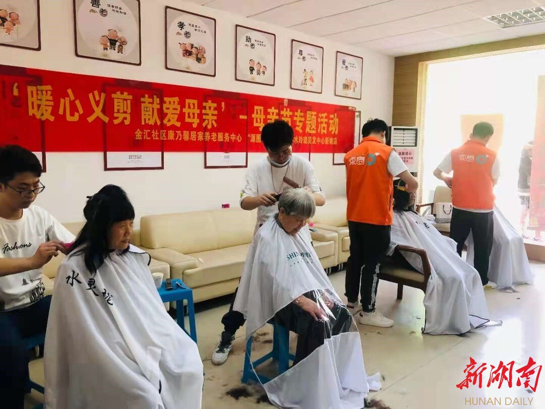 新湖南客户端5月8日讯(通讯员 李园莉)为弘扬中华民族传统美德,营造敬母爱母的良好氛围,更好地服务社区居民,切实为居民做好事、办实事,在母亲节来临前夕, 5月8日下午,长沙市天心区文源街道金汇社区党委联合文源街道“源圈”公益服务站在金汇社区居家养老服务中心开展“暖心义剪 献爱母亲”母亲节专题活动,为辖区60岁以上的母亲进行暖心义剪。