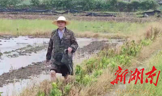 5月23日,华容县章华镇城南村的水稻良种试验田,78岁的农业研究员杨开炎,正打着赤脚在田里指导农民按选种要求插秧。他说,要以实际行动弘扬袁隆平院士的献身精神。