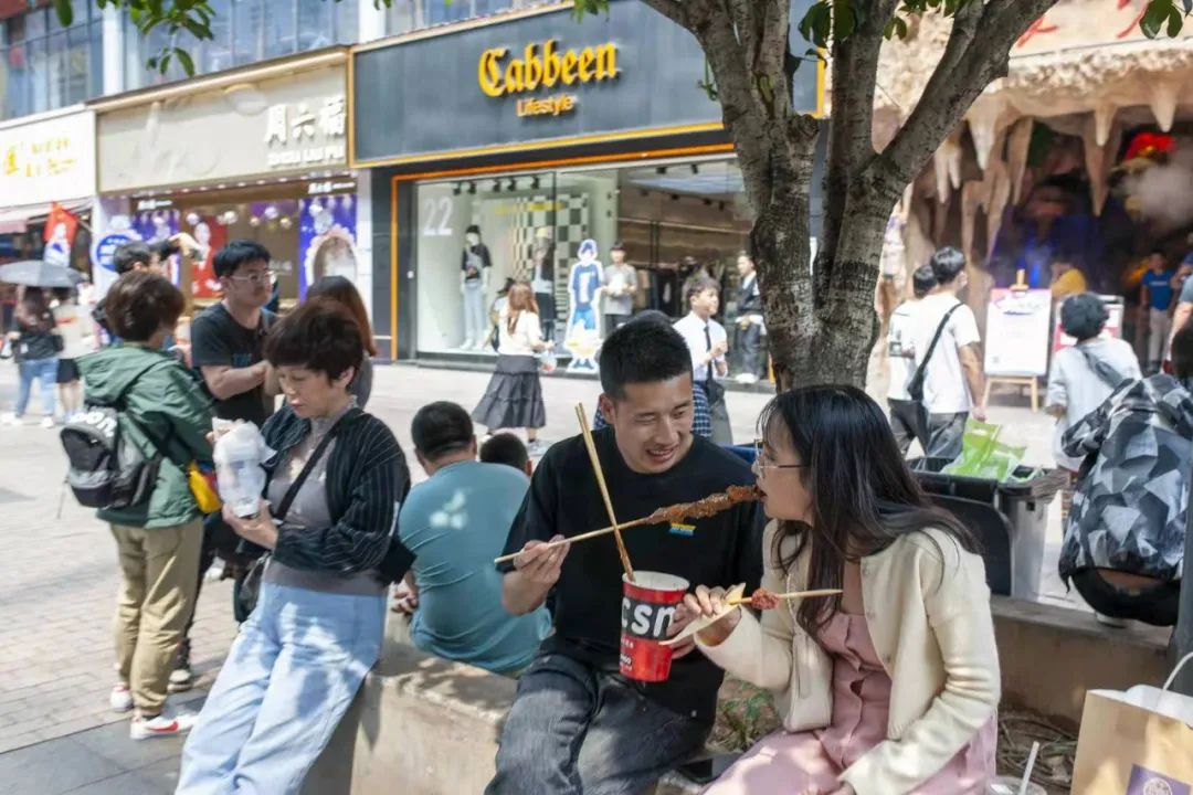 5月1日,小朋友在湖南米粉街嗦粉。湖南日报·新湖南客户端 记者 辜鹏博 摄