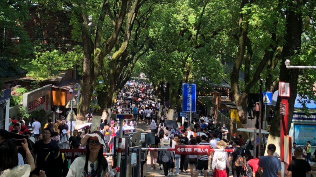 麓山景区、橘子洲景区游客达到最大承载量,景区严格执行“未预约不参观”措施。