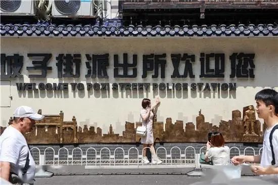 长沙坡子街派出所成“五一”新晋网红打卡地,许多游客在路过时,都会以此为背景,打卡拍照。