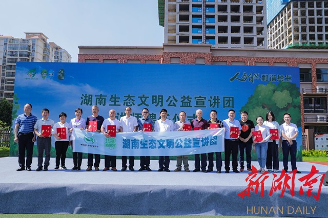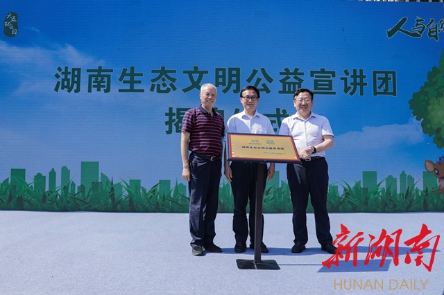 启动仪式上,省生态环境厅党组副书记、副厅长刘群,省生态保护联合会会长周秋光和湖南生态文明公益宣讲团总团长余礼湘为湖南生态文明公益宣讲团揭牌,指导单位及主办单位领导嘉宾为宣讲团首批13位讲师颁发了聘书,标志着湖南生态文明公益宣讲团正式成立。