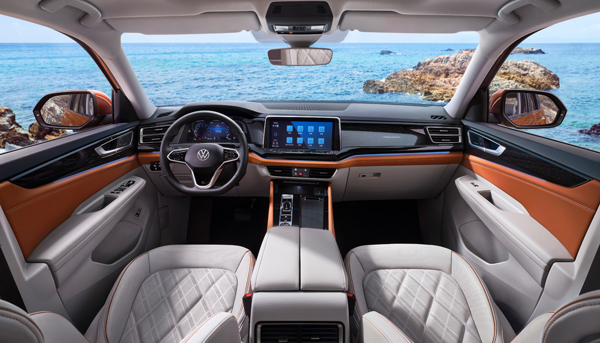 内饰设计上,全新途昂家族采用悬浮式中控交互屏设计,辅以双层中央控制台及可调式氛围灯及环绕饰板,打造立体悬浮科技氛围。而镂空式设计的中控台区域焕然一新,采用拨片式数字换挡方式,增添了科技感与档次感。而30色格调环境氛围灯豪华套装、曼哈卡顿高级音响,让豪华的科技氛围无处不在。更有平视显示系统、10.2英寸全液晶数字仪表、12英寸多点触控液晶中控屏组成的三位一体的虚拟显示系统,集成更多功能,让车辆信息清晰可读,增添驾驶舱的科幻感。