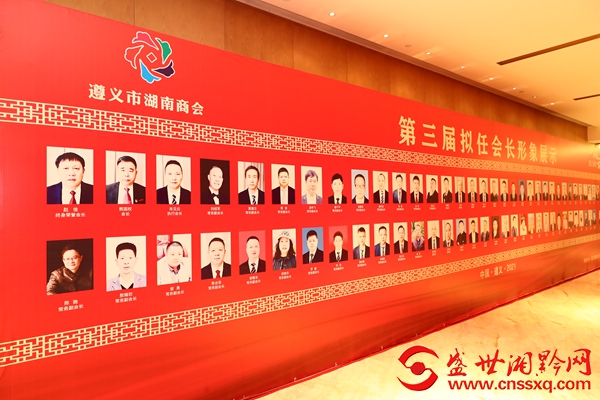 湖南省工商联二级巡视员、组织人事处处长谢明亮,贵州省工商联办公室主任胡祥,遵义市委统战部副部长、遵义市工商联党组书记吴疆以及湖南异地联合会顾问李进国、中国商业文化研究会湘商分会会长伍继延等参会。伍继延、金东集团董事长吴向东、著名书法家戴玉春被聘为遵义市湖南商会第三届理事会顾问。