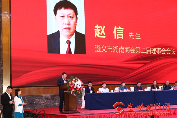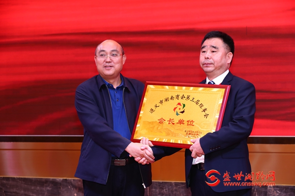 遵义湘商,风云十年。5月29日,遵义市湖南商会第三届一次会员代表大会、十周年庆典暨“湘商走进红色圣地 携手助推遵义发展”招商引资推介会圆满举行。熊国权当选为第三届会长,肖见云当选执行会长,李若平当选监事长,胡荣当选秘书长,创会会长、第一、二届会长赵信当选为终身荣誉会长。湖南省工商联、贵州工商联、湖南异地商会联合会、遵义市工商联、遵义市民政局等部门领导和全国知名湘商代表、近百家湖南商会负责人及遵义湘商600余人齐聚红色圣地,共贺遵义湘商盛典。