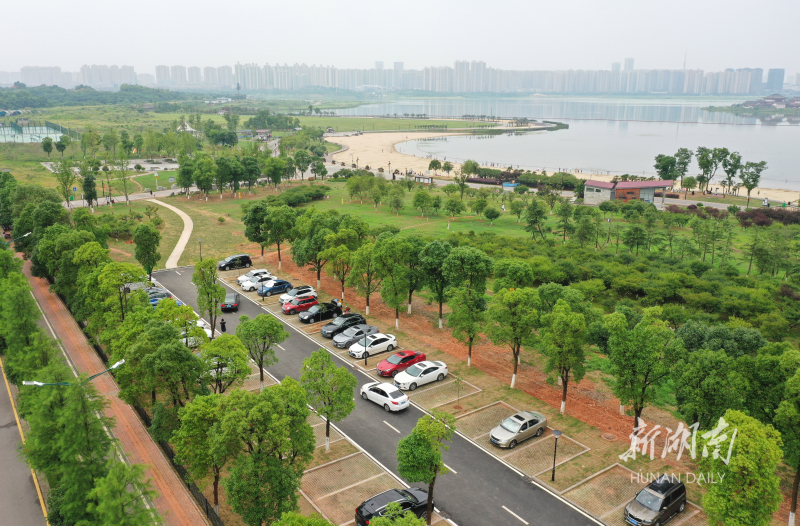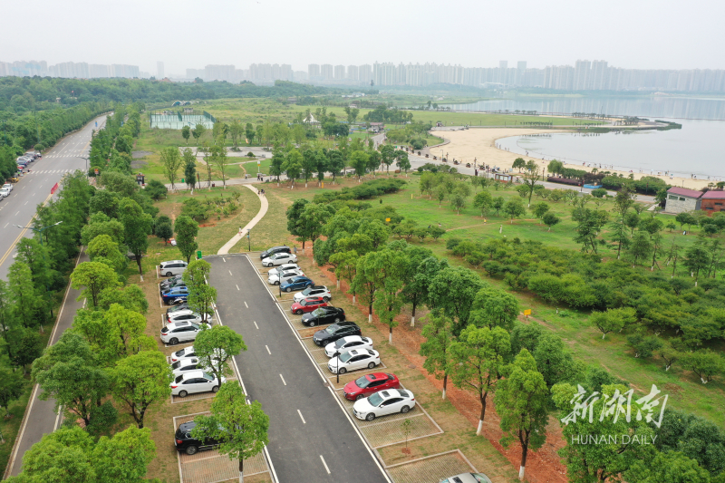 6月21日,湖南松雅湖国家湿地公园,新近投入使用的金沙银滩停车场。今年,该公园计划新建8个停车场,缓解停车难问题。目前,北部园林区关羽广场、金沙银滩、幸福林的3个停车场已完成建设,于日前对外开放, 共提供360个车位。 湖南日报·新湖南客户端记者 田超 摄