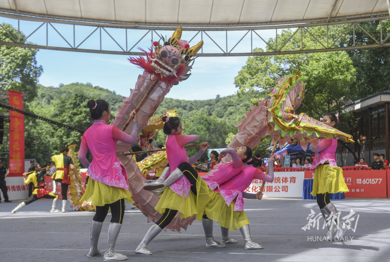 6月14日,选手在进行舞龙比赛。当天,2021“红色庆典”长株潭中华传统体育国际锦标赛总决赛在长沙石燕湖举行。赛事设舞龙、舞狮、鼓艺、高桩南狮等项目,吸引了长沙、上海、福州、重庆等国内队伍以及留学生队伍参赛。湖南日报·新湖南客户端记者 辜鹏博 摄