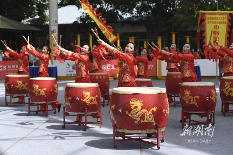 6月14日,选手在进行击鼓比赛。当天,2021“红色庆典”长株潭中华传统体育国际锦标赛总决赛在长沙石燕湖举行。赛事设舞龙、舞狮、鼓艺、高桩南狮等项目,吸引了长沙、上海、福州、重庆等国内队伍以及留学生队伍参赛。湖南日报·新湖南客户端记者 辜鹏博 摄