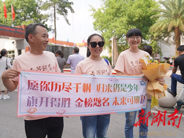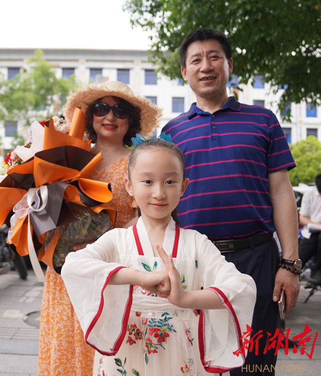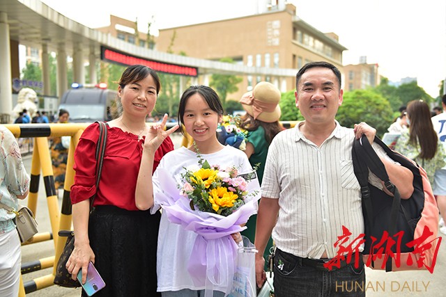 6月9日18:30,怀化湖天中学考点,考生考完生物后,与家人合影留念。(记者 雷鸿涛)