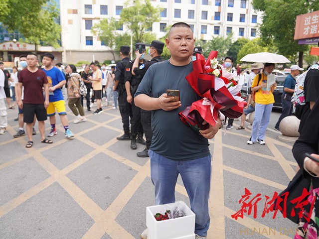 一举夺魁!怀化三中门口,家长为考生加油。(记者 雷鸿涛)