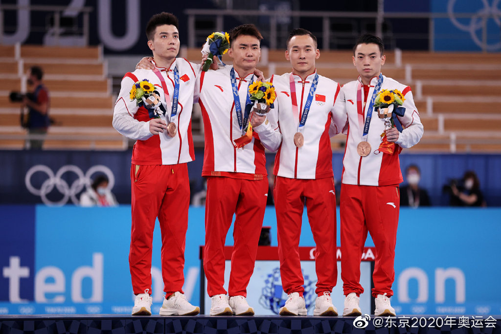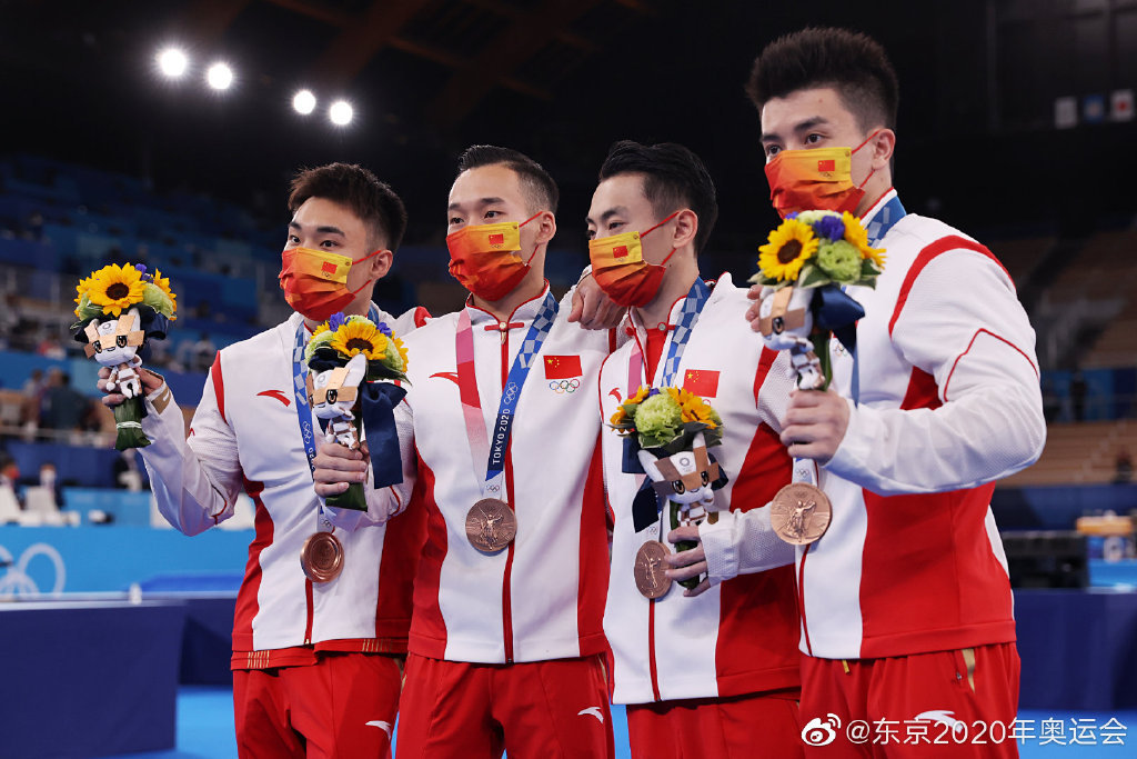 在东京奥运会体操男团决赛中,由林超攀、孙炜、肖若腾、邹敬园组成的中国男子体操队,以261.894的总得分摘下东京奥运会体操项目男子团体赛铜牌!