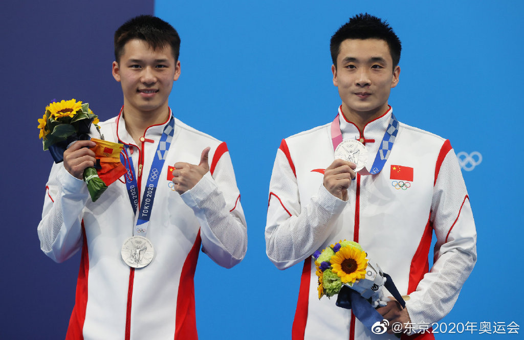 7月26日,中国跳水队曹缘与陈艾森在东京奥运会跳水男子双人10米跳台决赛中以470.58分的成绩获得银牌。